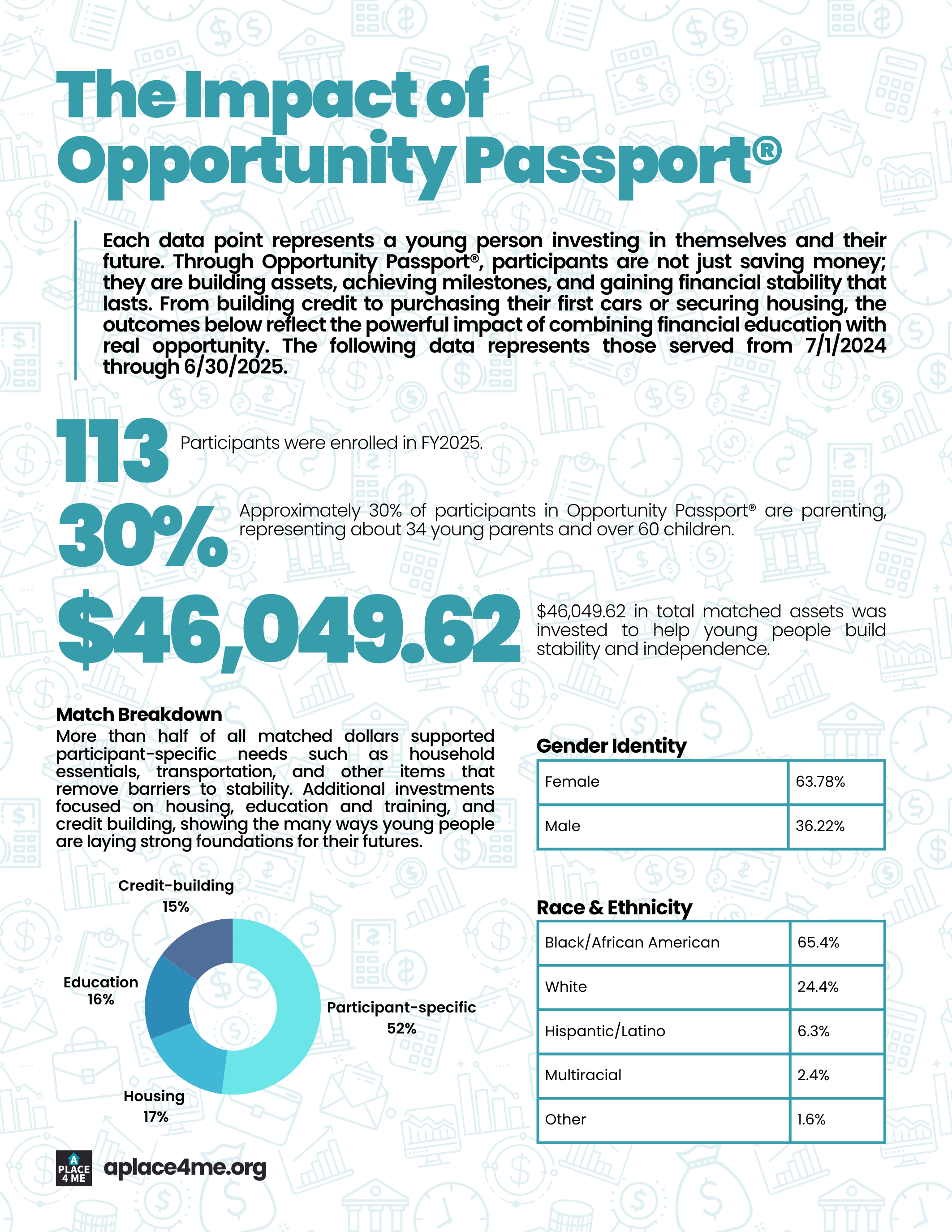 Opportunity Passport® is a matched savings and financial capabilities program for youth ages 14-25 who have spent at least one day in foster care after their 14th birthday. The course helps youth open a bank account in their own name and matches youth savings for the purchase of assets.