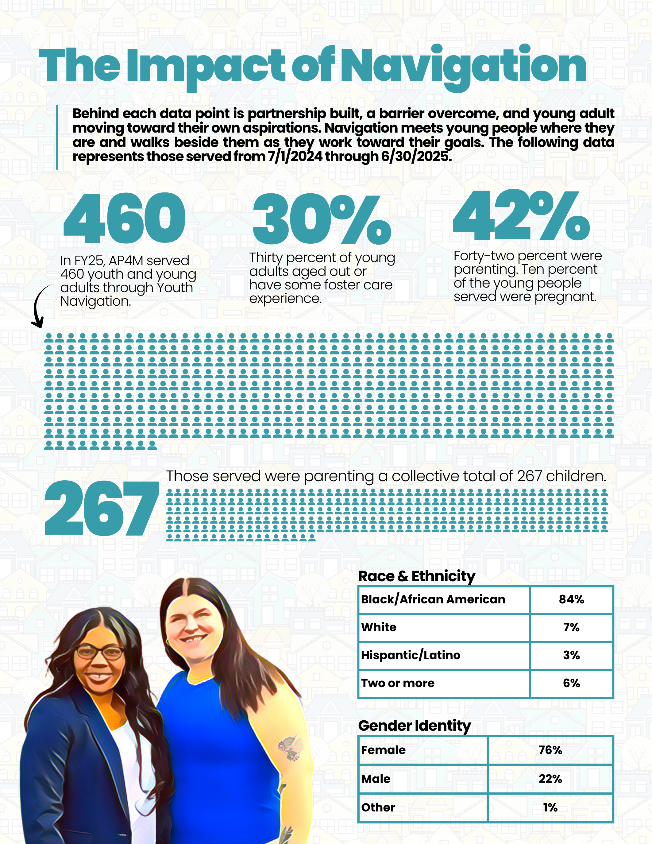 A Place 4 Me’s Youth Navigation Team walks alongside young people as they navigate housing, education, employment, and other critical needs. All of our Navigators have lived experience with homelessness or foster care, allowing them to build trust and provide individualized support that connects youth to the resources and relationships needed for lasting stability and success.